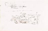 recto: Two Lansdscapes in Vignettes, Two Riders, verso:Man resting on Sunbed, Camels and Attendants Resting - leaf from Sketchbook - War