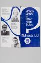 About MePrinted blue and white leaflet produced for staff summarising the responsibilities of the Effect Yarn Sales staff, following a restructure. Listed are Christopher Symington, Mike Rae, Jeremy Saunders, Frank Nelson, Ove Anderson and John Ward (with photographs).