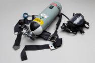 About MeSingle tank on frame with shoulder straps and large full face mask.