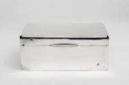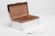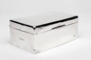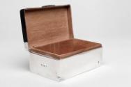 About MeThe silver cigarette box is hallmarked with the maker's mark "JC" for James Carr of Aberdeen, the Lion Passant sterling silver mark, the Birmingham town mark and date letter 'L' for 1935/6. The base has a label inset into the leather: "Gold and Silversmith, James Carr, Established 1881, Little Belmont St. Aberdeen".The box is of plain rectangular form with a leather base. Clearly identifiable marks on the side. Traditional cedar wood interior.