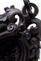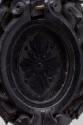 About MeBlack Ebonite mourning pendant of an oval form with a heavy wreath style border around a sunken central reserve, which features a foliate design. There is further foliate moulding at the bottom and top of the pendant, along with a loop where the pendant would have been attached to a heavy Ebonite chain, which is no longer with the piece.