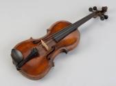 Mediummaple, pine, helicore (steel), ebony and brass bow: brazil wood, ebony frog, horsehair
