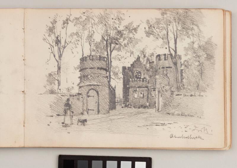recto: Turreted Gates, Aberbrothock, verso: sketches of heads - Leaf from Artist's Sketchbook