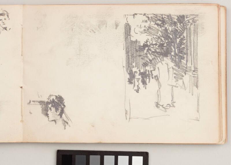 recto: Street Scene and a Woman's Head in Profile , verso: Sketches of Women - Leaf from Artist's Sketchbook