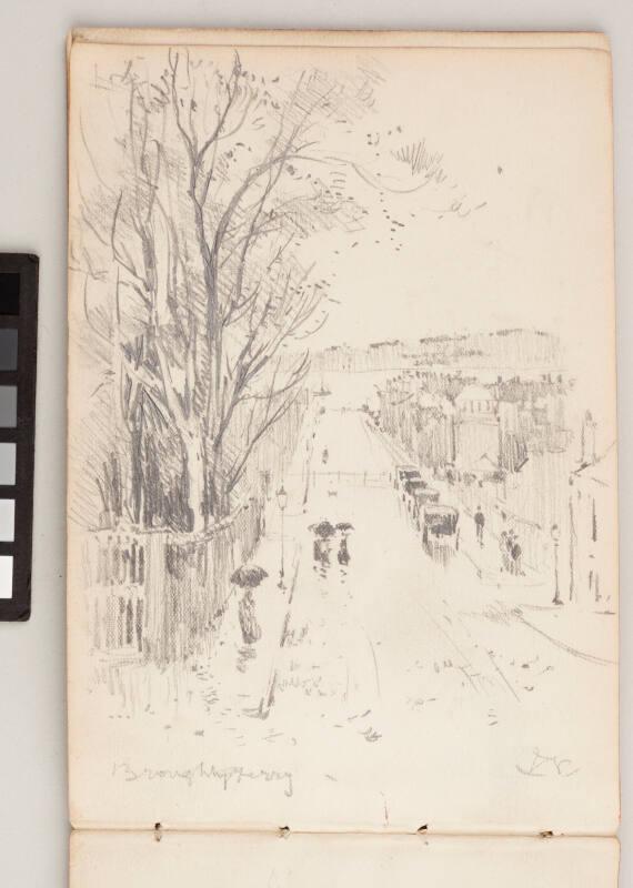 recto: Faint sketch of a Woman in Clogs and Carrying a Scythe, verso: Broughty Ferry - Leaf from Artist's Sketchbook