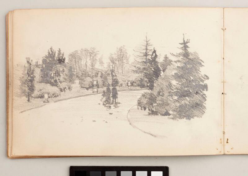 recto: small Landscape with Trees and Birds, verso: Family Walking in a Park - Leaf from Artist's Sketchbook
