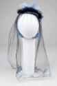 This suit was made by the bride’s neighbour, who was a dressmaker. It was worn with a short, black tulle veil attached to a blue headdress decorated with blue feathers.