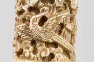 About MeThis is a beautifully carved ivory etui or decorative case containing ivory or bone needles. The case has a screw top and screw bottom and is carved with a dragon, butterflies, birds and foliage.