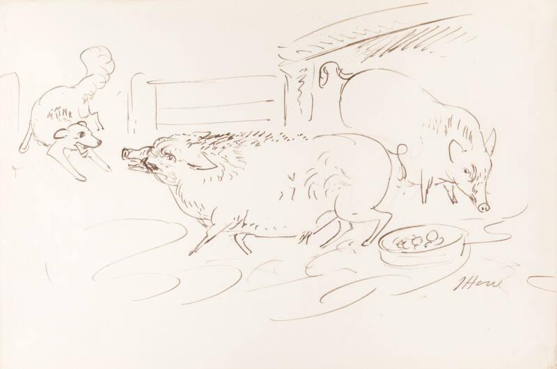 Two pigs and a dog
