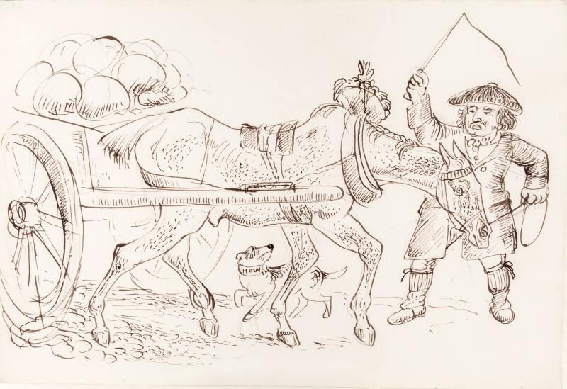 A man pulling a horse-drawn cart