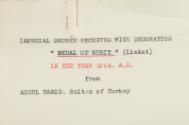 Imperial Decree received with Decoration "Medal of Merit" (Liakat)