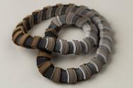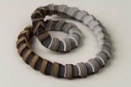 Nel Linssen always took an intuitive approach to her bracelets and necklaces made from paper; however, it is also an approach based on years of research and haptic knowledge. The relationship between wearer and viewer is the essence of Linssen's jewellery, its articulation on the body enhancing and highlighting its colours and textures. While the wearer is aware of the sensuous nature and movement of the jewellery, the viewer is drawn to the constant visual changes to the work wrought by the slightest movement of the body. Nel Linssen died on the 1st August 2016 and she is one of The Scottish Gallery's favourite jewellers and will be missed. We celebrated her 80th birthday with a special exhibition in 2015.