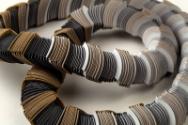 Nel Linssen always took an intuitive approach to her bracelets and necklaces made from paper; however, it is also an approach based on years of research and haptic knowledge. The relationship between wearer and viewer is the essence of Linssen's jewellery, its articulation on the body enhancing and highlighting its colours and textures. While the wearer is aware of the sensuous nature and movement of the jewellery, the viewer is drawn to the constant visual changes to the work wrought by the slightest movement of the body. Nel Linssen died on the 1st August 2016 and she is one of The Scottish Gallery's favourite jewellers and will be missed. We celebrated her 80th birthday with a special exhibition in 2015.