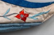 About MeIn China, women bound their feet as a symbol of beauty until the early 20th century.These ivory coloured silk shoes are embroidered in satin stitch with white and red flowers and foliage on both sides. In China, the colour red symbolises good fortune and joy.