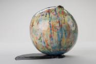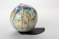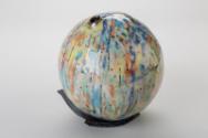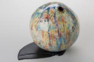 About MeThis hand formed spherical stoneware pod was decorated using coloured slips and glazes, with platinum lustre detail. The pod is attached and placed off center on a flat irregular slate base. The inspiration for this piece is the sea.