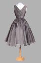 About MeShort 1950s evening dress with a fitted bodice and a wide full circular skirt. The bodice of the dress is decorated with clear bugle beads and pearls in a floral design. The 1950s saw a return to the glamour of the pre-war years. Materials and trimmings, denied because of clothes rationing, became more readily available.