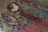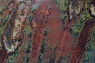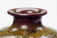The vase is decorated with an irradescent thick green, reddish brown and cream elm ash glaze which reaches to about 2cm from base.