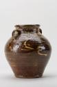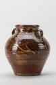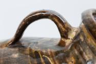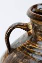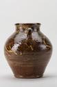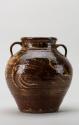 About MeThis earthenware two-handled brown crock has a bulbous oviform body which tapers to the foot. It is glazed in a thick brown mottled glaze with a meandering cream slip abstract decoration.