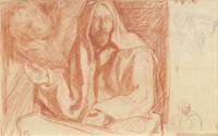 Mediumred and black chalk on pale straw coloured paper