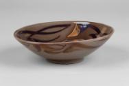 The striking painted decoration on this tin-glazed earthenware bowl resembles calligraphy and is typical of his work. The bowl has a lustrous surface caused by a layer of pure metal on the surface of the glaze.