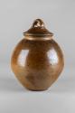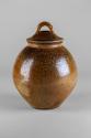 About MeAn ovoid stoneware jar which tapers to both foot and rim, with circular domed cover. Both pieces are glazed in a mottled brown wood ash and salt glaze.Michael Casson was a highly respected British studio potter. Casson and his wife Sheila established a pottery at Wobage Farm in Herefordshire in 1977. He specialised in salt-glazed functional stoneware and blended his own slips (liquid clay) and glazes. When salt was introduced to the kiln at a high temperature the distinctive colours and textures for which Casson is known, were produced.