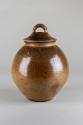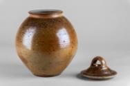 About MeAn ovoid stoneware jar which tapers to both foot and rim, with circular domed cover. Both pieces are glazed in a mottled brown wood ash and salt glaze.Michael Casson was a highly respected British studio potter. Casson and his wife Sheila established a pottery at Wobage Farm in Herefordshire in 1977. He specialised in salt-glazed functional stoneware and blended his own slips (liquid clay) and glazes. When salt was introduced to the kiln at a high temperature the distinctive colours and textures for which Casson is known, were produced.