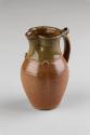 About MeRoger Cockram owned Northcott Pottery in rural North Devon from 1979-1986. The glaze on the top section of this stoneware jug is a muted moss green colour and the interior of the jug has a mottled brown glaze. The handle has an elegant ridged decoration.