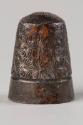 About MeThis thimble was used by Isabella Park (1921 to 2018). She was a milliner who lived and worked in Aberdeen, working for Hilda Le Fevre for over 40 years.The thimble must have been amongst one of her favourites. It's been used so often that it's now oval in shape, rather than round. The thimble is marked size 8.