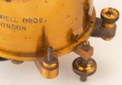 About MeThis optical or mirror galvanometer was used by Frederick Soddy during his time at the University of Aberdeen. The galvanometer was a precision tool used to measure electric charge. The extendable brass tube which projects up can be adjusted to alter the distance of the scale from the mirror which is inside the galvanometer, and the three levelling feet can be adjusted to ensure the instrument is completely horizontal. The top of the brass galvanometer, which was made by Gambrell Bros in the late 19th to early 20th century is inscribed: “Univ. Abdn. Chem. Lab.”.For more information about this object, which belongs to the collection of the University of Aberdeen Museums & Special Collections, visit: