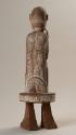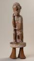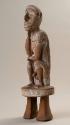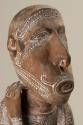 About MeWilliam MacGregor spent much of his career in the southern hemisphere. The wooden shield comes from the Trobriand Islands, Papua New Guinea, and dates from 1850-1858. Unique to the island, the shield is painted with images of birds and serpents in red, white and black paint. The two wooden carved figures – a male figure and a female figure – also come from the Trobriand Islands. The male figure, dates from 1899 and is seated on a stool with one arm touching his neck. Geometric patterns filled with lime, have been carved into the statue, extending down his back and onto the stool. The female figurine is made from polished wood dates from 1850-1899 and is decorated with zigzag, wavy and spiral carvings filled with lime. The statue stands upright on a stool and has a large domed head, a long pointed nose and scrollwork eyes.