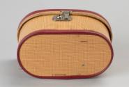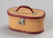 About MeOval vanity case, with hinged lid and carry handle. The owner of this vanity case and her sister had matching cases and took them on their regular holiday to Llanelli in Wales to visit their maternal grandmother. It was used to store all their needs for journey from Aberdeen to Llanelli, which in the 1950s by train would take around 27 hours! They kept "I Spy " books, comics, sweets and pocket money in the vanity case.