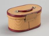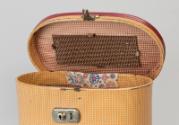 About MeOval vanity case, with hinged lid and carry handle. The owner of this vanity case and her sister had matching cases and took them on their regular holiday to Llanelli in Wales to visit their maternal grandmother. It was used to store all their needs for journey from Aberdeen to Llanelli, which in the 1950s by train would take around 27 hours! They kept "I Spy " books, comics, sweets and pocket money in the vanity case.