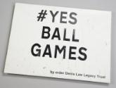 About MeA '# Yes Ball Games' sign from a campaign run by the Denis Law Legacy Trust and launched in Aberdeen in 2015. The sign is an old Aberdeen City Council 'No Ball Games' sign that was upcycled by Communication Design students from Gray's School of Art as part of the campaign.Denis Law Legacy Trust joined forces with Aberdeen Greenspace, Aberdeen Play Forum, the City Council and many other partners to launch a campaign that resulted in Aberdeen City Council removing hundreds of No Ball Games signs from across the city in 2015. Denis Law, the most celebrated footballer from the city, was on hand to remove the first one in 2015.