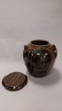 About MeThis tall stoneware jar features two lug handles and a flat lid, often known as a stool cover. Fully glazed in a brown glaze on the exterior with a green glaze inside.