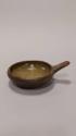 About MeEarthenware vessel, or shallow dish, with a pulled handle. The exterior is unglazed whilst the interior is covered in a yellow-green glaze.