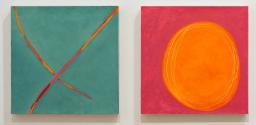 Becoming has grown out of Mather’s investigation into historical depictions of women’s work and the contemporary female aesthetic. The diptych responds to two artworks in Aberdeen’s collection, Tracy Emin’s prominent neon heart For You and Barbara Hepworth’s Meditation. Mather’s describes each as representing the impression of woman.