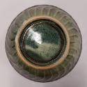 The bowl was fired in the hottest part of the kiln creating a deep olive green glaze, streaked with navy blue becoming almost black.