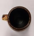 The lower third is dark brown and the top two-thirds are light brown with white and dark brown slip-trailed decoration.