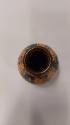 About MeThis medium-sized earthenware vase is decorated with dark brown slip (liquid clay) trailed over a white glaze and a yellow galena (lead) glaze. There are six panels around the middle and each alternate panel is covered with a greenish black overlay, perhaps suggesting that Cardew wished to hide what was beneath.