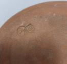 It was fairly common practice for Elijah Comfort to throw these dishes, although most do not carry his EC mark. Michael Cardew decorated them with a creamy liquid clay known as slip and often applied his own MC mark, alongside WP for Winchcombe Pottery. Comfort and Cardew were joined in 1936 by Ray Finch who eventually took over Winchcombe Pottery. First as manager after Cardew returned to Cornwall three years later and then buying the business in 1946 .