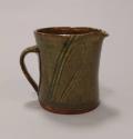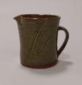 About MeThis small earthenware milk or cream jug is glazed in an olive green slip (liquid clay). The potter has used either his fingers or a tool to comb through the slip before it dried to create an abstract pattern resembling blades of grass.