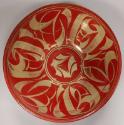 About MeThe interior of this white tin glazed earthenware bowl is decorated with red lustre overpainted with golden lustre in an Islamic-style pattern.