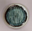 About MeOne of a set of six side plates glazed in a blue "Dalemain" ash with bands of trailed and feather combed white slip.