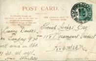 Printed Inscription: POST CARD // For INLAND Postage only. // THIS APCE, AS WELL AS THE BACK, MAY // BE USED FOR COMMUNICATION. // For FOREIGN Postage the Back only. // (Post Office Regulation). // THE ADDRESS ONLY TO BE WRITTEN HERE.