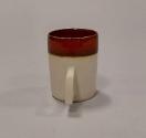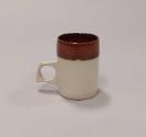 About MeThis hand-thrown espresso cup with angular handle is decorated with a combination of white feldspathic glaze and iron-red glaze.
