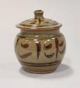 About MeThis stoneware lidded pot is glazed in a oatmeal coloured ash glaze with a bands of reddish brown slip-trailed decoration. They enclose vertical bands and swirls of brown slip applied by a brush and overlaid with iron glaze.