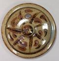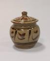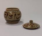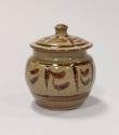 Stoneware Beige Lidded Pot with Red and Brown Slip-trailed Decoration
