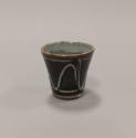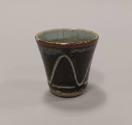 About MeThis stoneware small beaker or teacup has a slightly flared body and is glazed in a greenish speckled ash glaze and a red-brown iron glaze known as tenmoku. The zig-zag decoration is created by slip trailing white Nuka glaze. Nuka is a traditional Japanese glaze combining wood ash, rice husk ash and flint to give a glassy effect.
