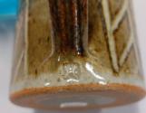 Edward Hughes frequently used glazes incorporating wood ash from local sources close to his pottery studio at Isel Hall, near Cockermouth, Cumbria.