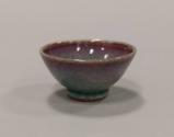 About MeA stoneware bowl, or cup, for drinking sake. It is glazed both inside and out in ash glazes, achieving shades of lavender and mottled emerald green with a dark speckled centre.